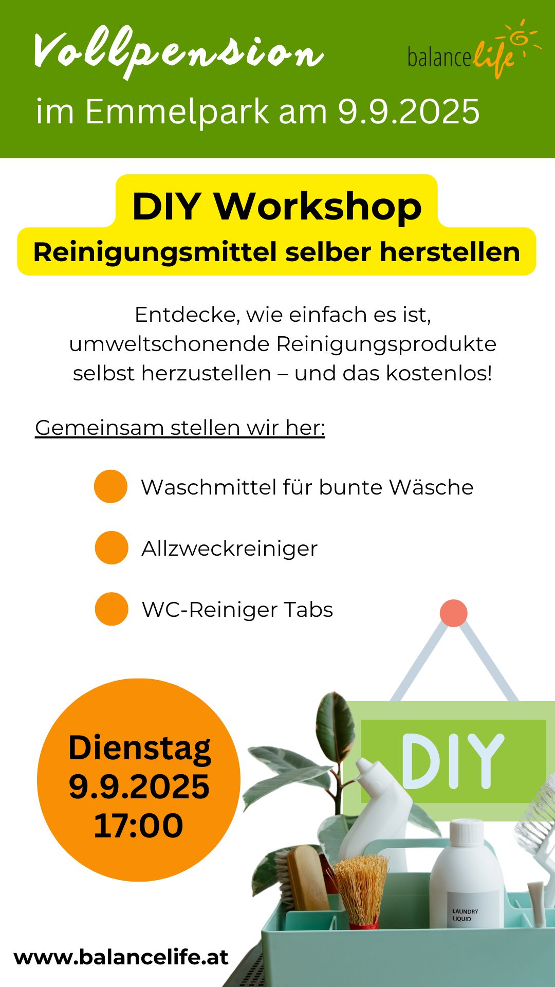 #DIYReinigungsmittel #BalanceLife #NachhaltigReinigen #DIYWorkshop #ZeroWaste #Umweltfreundlich #VollpensionProjekt #NachhaltigkeitImAlltag #SelberMachenMachtSpaß