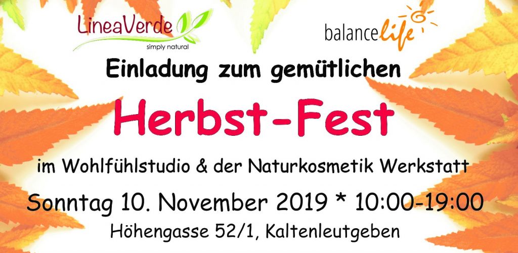 Wir freuen uns, Dich und Deine Freunde und Familie wieder zu unserem gemütlichen Herbstfest einzuladen. Unser schon fast traditionelles Herbstfest findet heuer am Sonntag, 10. November 2019 statt. Achtung – das Fest findet Outdoor statt (Zelt und Garten).