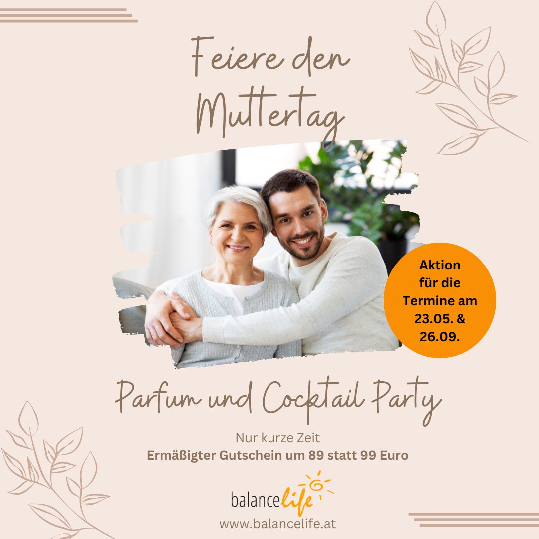 Zur Muttertagsaktion bekommst du zwei Tickets für unsere Parfum & Cocktail Party für den 23. Mai 2025 oder 26. September 2025 um nur 89 €.