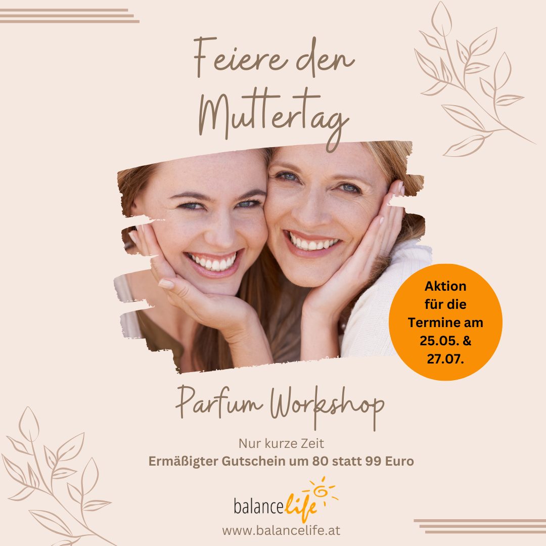 Sichere dir jetzt zwei Tickets für unseren Parfum Workshop am 25. Mai 2025 oder 27. Juli 2025 – und das zu einem extrem vergünstigten Preis durch unsere Muttertagsaktion.