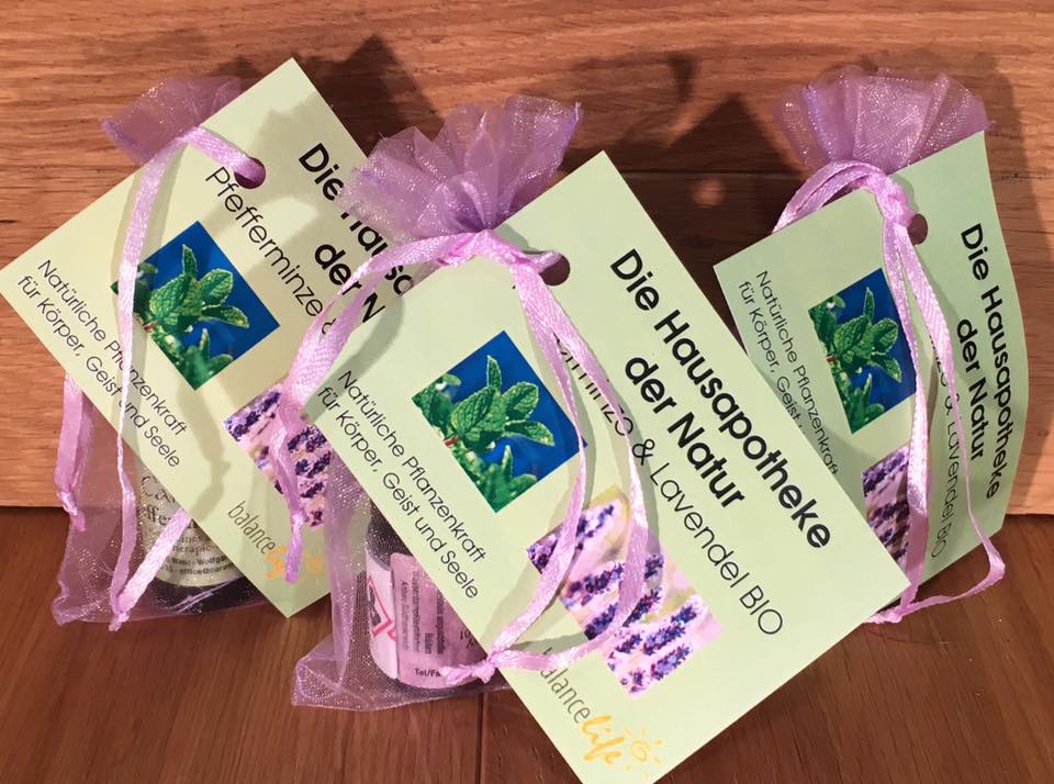 Die Hausapotheke der Natur enthält zwei wichtige ätherische Öle: Pfefferminze und Lavendel. Der Lavendel zur Entspannung und Beruhigung sowie bei vielen anderen Problemen. Er hat ein sehr weites Wirkungsspektrum. Die Pfefferminze wirkt optimal bei Verspannungen im Kopf- und Nackenbereich. Außerdem wirkt die Pfefferminze kühlend, blutstillend, entzündungshemmend und schmerzstillend. Alle genauen Anwendungshinweise erfährst Du bei einem Aromaabend oder im BalanceLife Wohlfühlstudio.