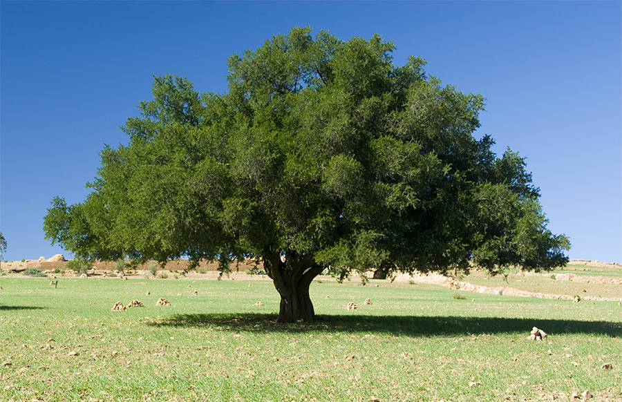 Der Arganbaum (lat. Argania spinosa) ist einer der ältesten Bäume der Welt und wächst auf der Erde nur noch im südwestlichen Marokko zwischen Essaouira und Agadir. Aus seinen Früchten wird das flüssige Gold Marokkos, das Arganöl, gewonnen. Durch die besondere Zusammensetzung des Arganöls und seine einmalig hohe Konzentration verschiedener ungesättigter Fettsäuren, ist es nicht nur als Speiseöl einmalig, sondern auch ein bedeutendes Nahrungsergänzungsmittel. In der Naturkosmetik ist es ein hervorragendes Öl für die Herstellung von Cremes.