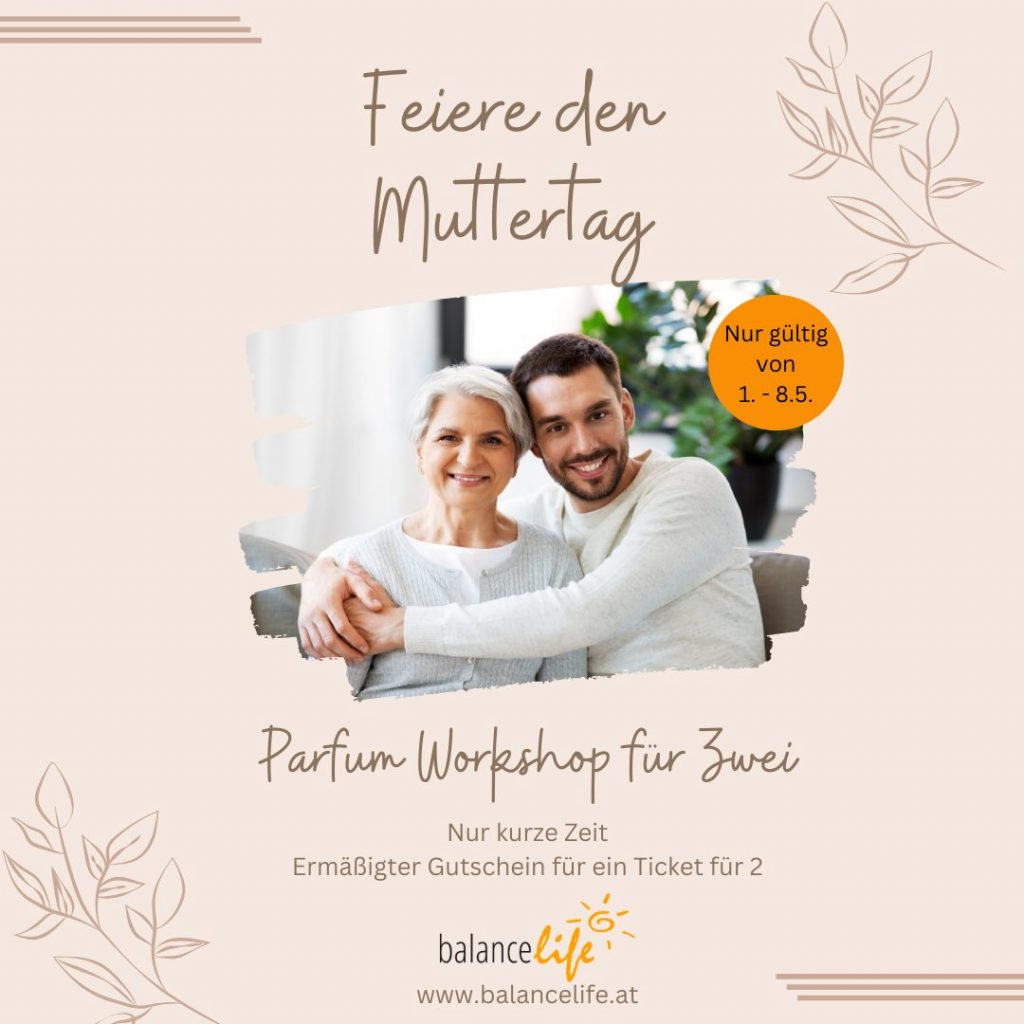 Zeige deiner Mutter, wie sehr du sie schätzt, indem du ihr ein Erlebnis schenkst, das alle Sinne anspricht. Und von 1. bis 8. Mai bekommst du den Gutschein für zwei Personen sogar ermäßigt. Gemeinsam könnt ihr dann wundervolle Duftkreationen erschaffen. Der Parfum Workshop von BalanceLife ist das perfekte Geschenk für den Muttertag! Gemeinsam könnt ihr […]