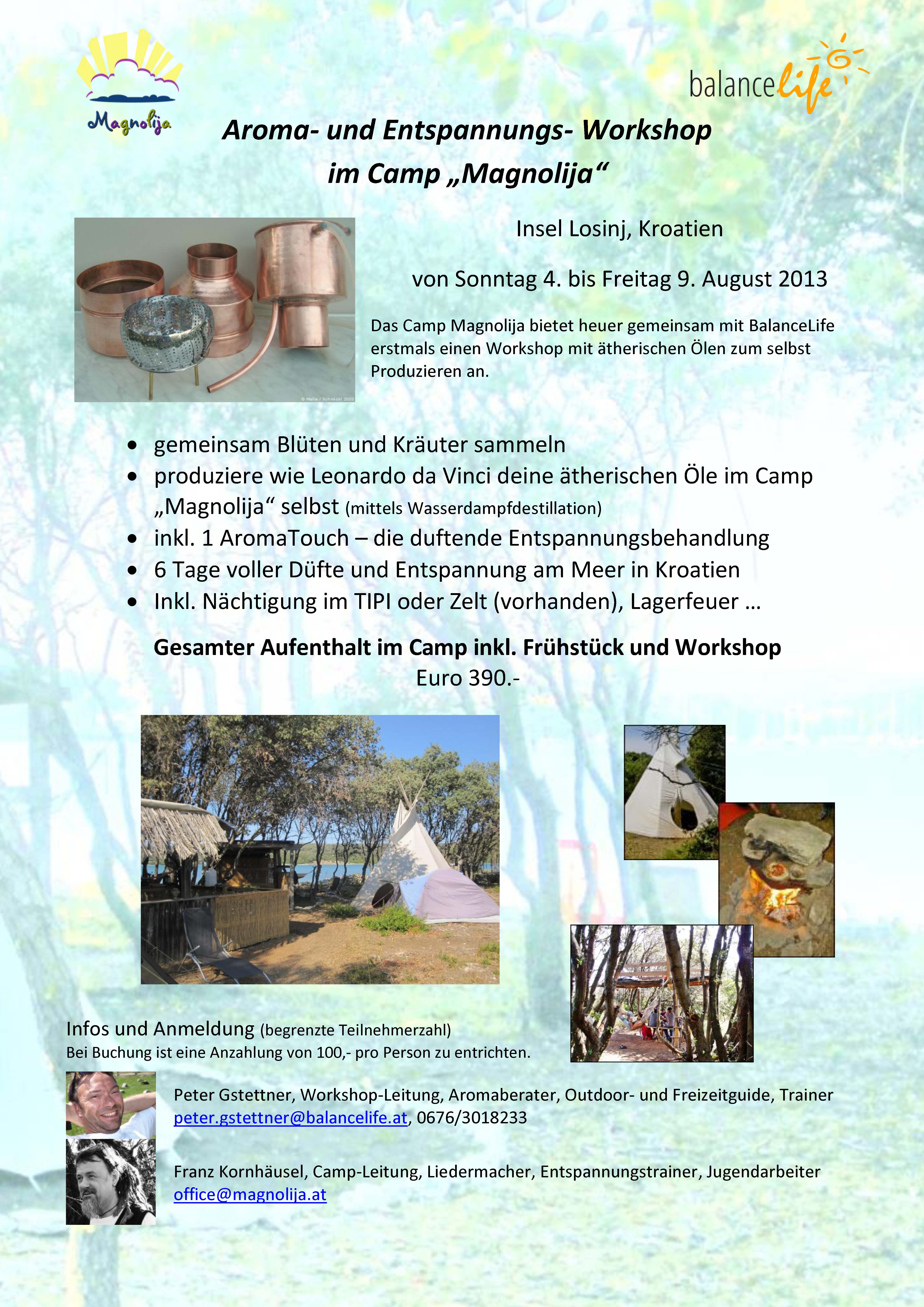 BalanceLife Magnolija Aroma und Entspannungs-Workshop Flyer 2013 V2 Veröffentlicht 4. Mai 2013 bei 4960 × 7016 in Aroma- und Entspannungswoche in Kroatien ← Zurück Weiter →