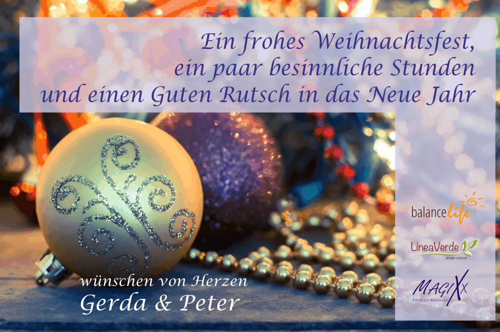 Ich Danke Dir für die gute Zusammenarbeit, für das Vertrauen, die Unterstützung und die Treue. Auf eine wundervolle Weihnachtszeit mit unzähligen schönen, fröhlichen und friedvollen Stunden im Kreise Deiner Lieben. Und viel Glück, Gesundheit und positive Energie für 2017!